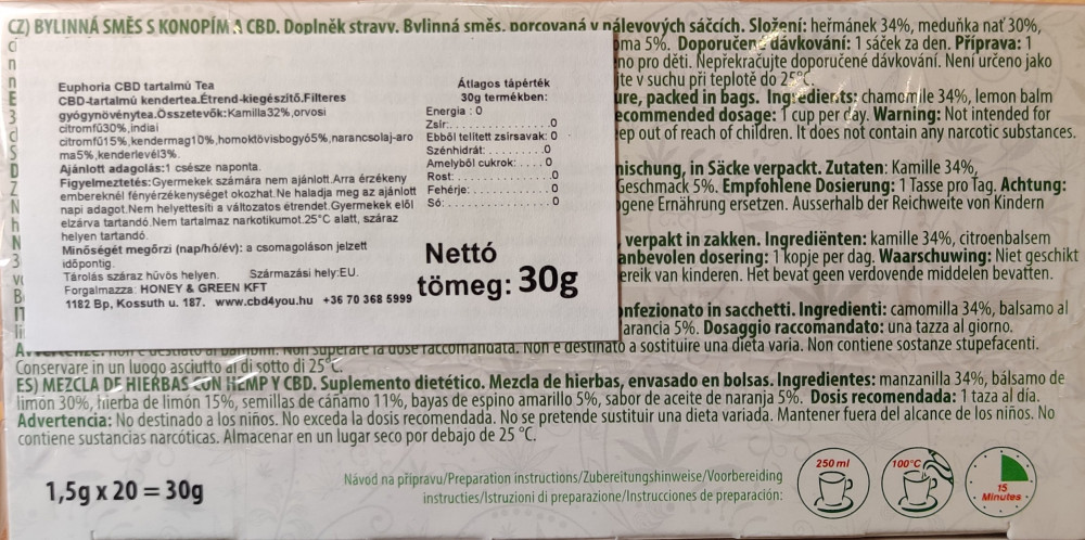 Euphoria CBD tea kannabiszos 20 filter